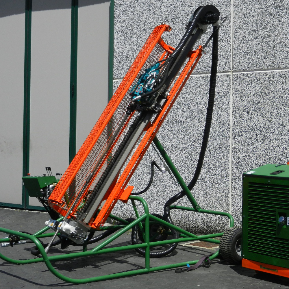 Developed to be used in remote areas where a light and easy transportable equipment is required. Designed to use down the hole hammers and light drifters, SPEEDYDRILL has a quick and easy system to fix the mast to any scaffold or special tubular sledges.