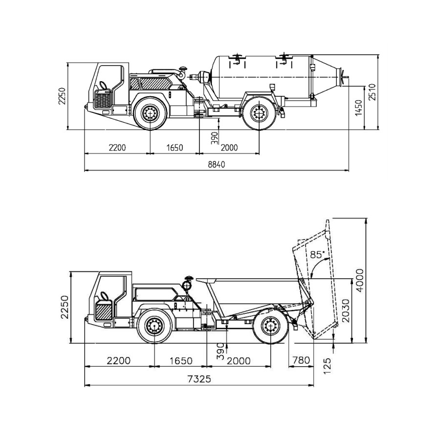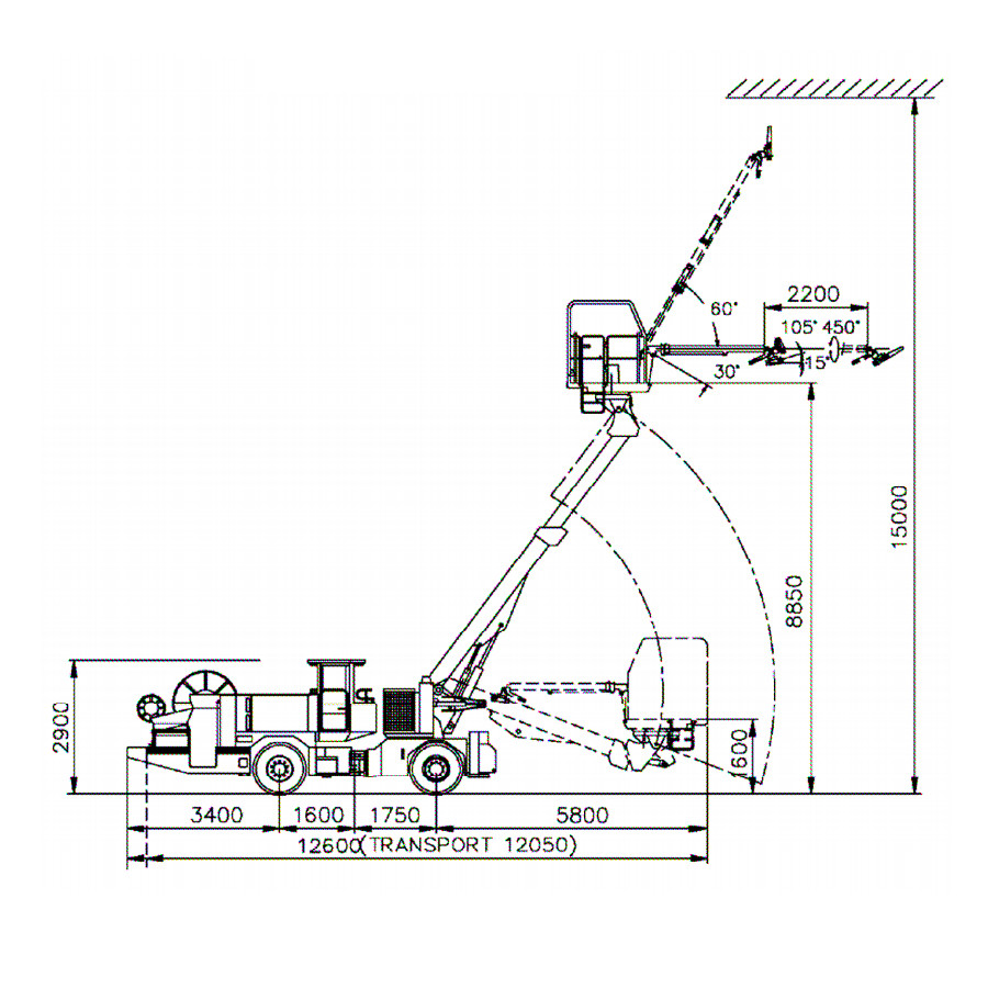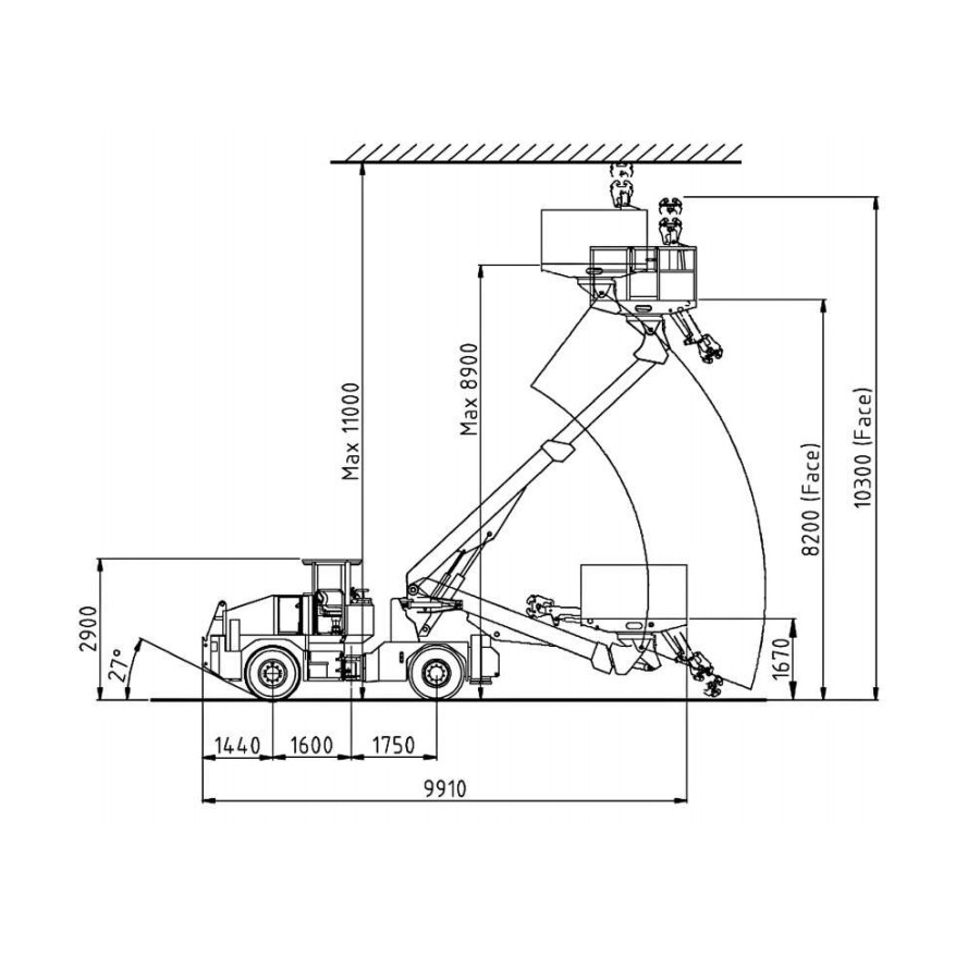 The two-arm lift-kit module 795 T has been designed for installing light arches, for charging holes at the face, for mounting various anchors and for putting wire mesh mats into place. Each arm can be controlled independently so as to guarentee safe and comfortable working conditions at any time.